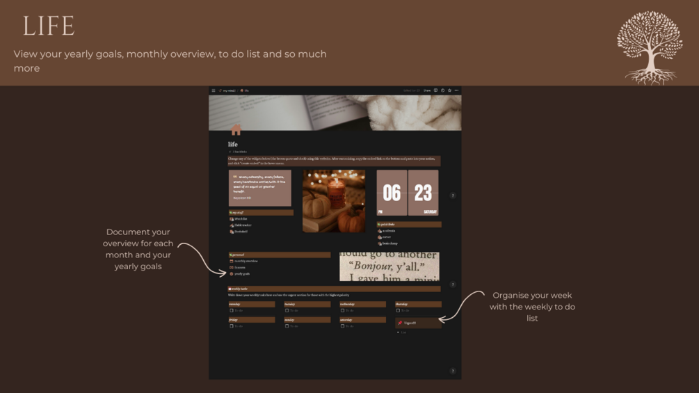 Stay productive with this cosy fall themed planner. I find it easy to forget things and let things pile up, which makes me overwhelmed and stressed. However, with this notion template, everything is in one place making it easier to keep track of things.