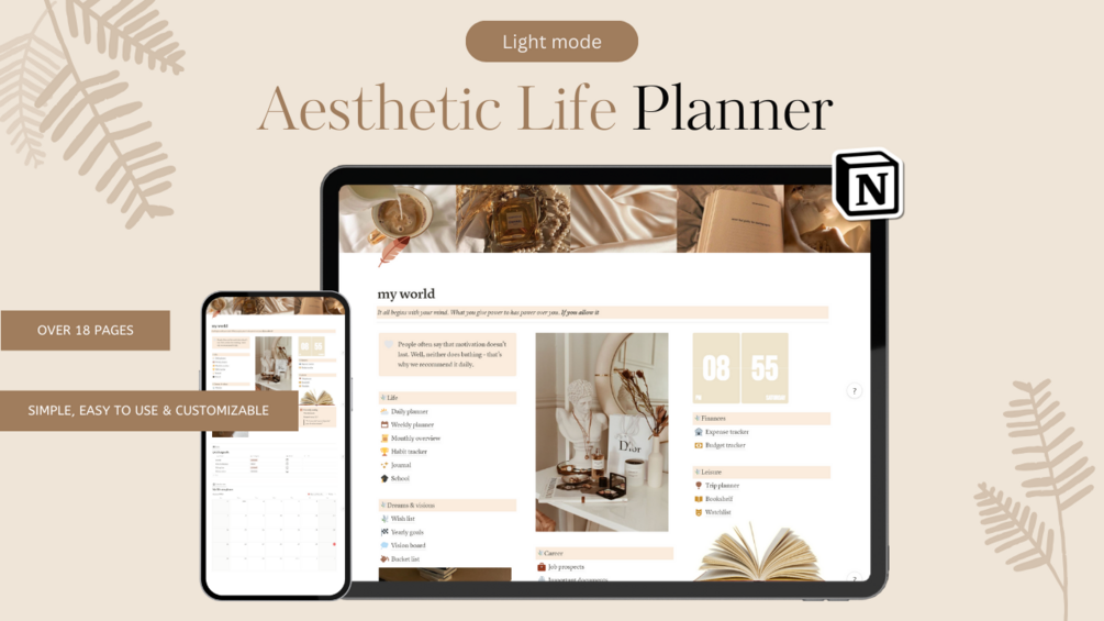 Life Planner Notion Template | Notion Dashboard | Brown Theme